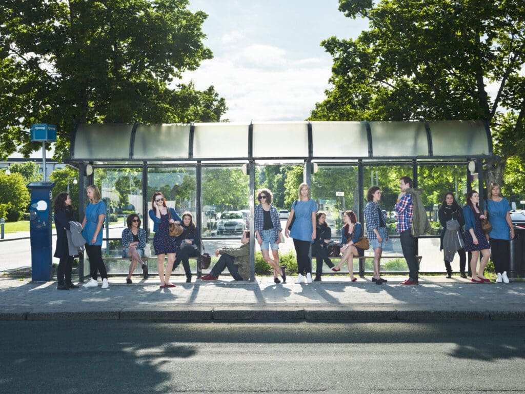 How do you solve this problem? Look at the key issues. People are uncomfortable, bored and tired of waiting for a bus that might show up any minute, but seems to take forever to come. If you were to make some changes to the design of the bus system, what would you do?