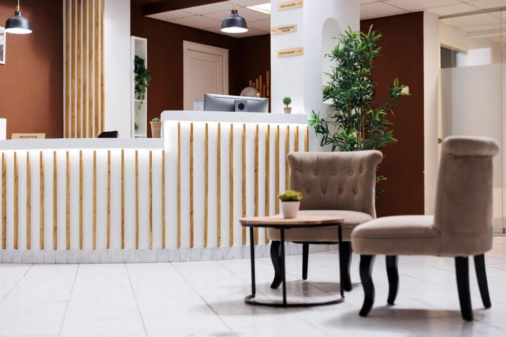 The reception area is crucial in forming first impressions when people approach you. A reception desk and a waiting area with chairs and a coffee table is adequate. You may want some space for a water cooler or an indoor plant.